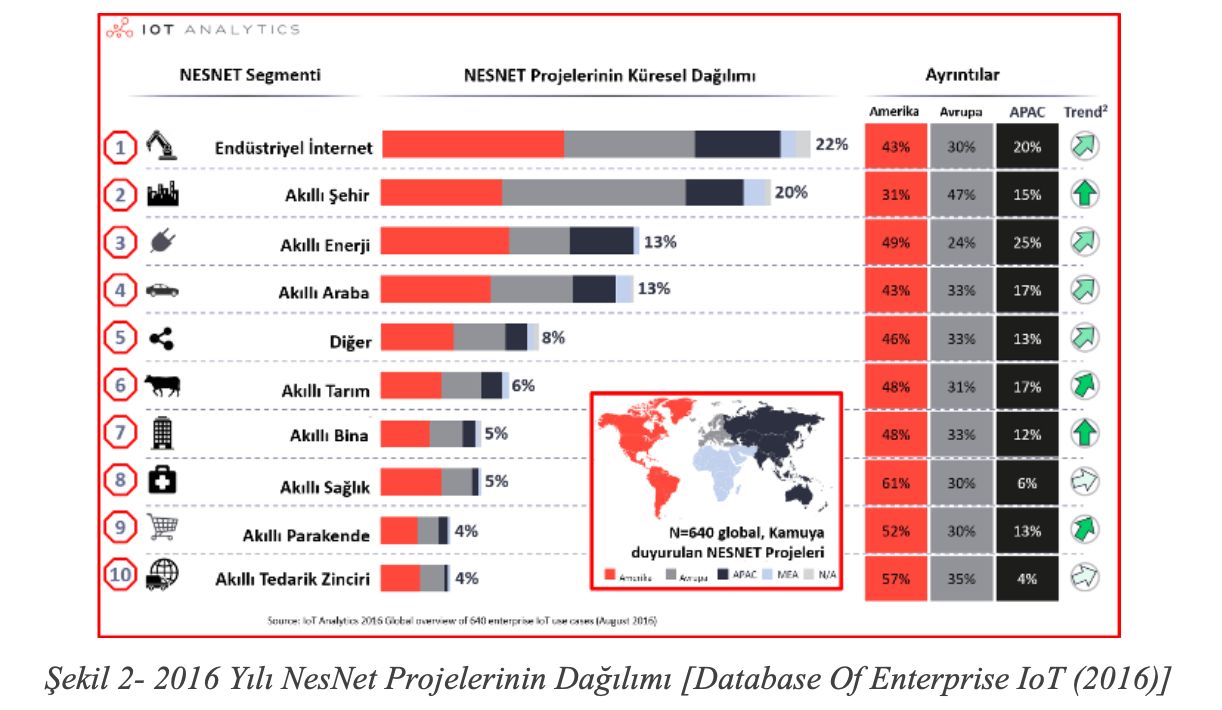 Bugün itibarıyla tahminen 16 milyar ağa bağlı cihazın kullanımda olduğu bilinmekte, bu sayının 2020 yılında tüm dünyada 50 milyara ulaşacağı beklenmektedir [Evans, D. (2011)]. Bu artış, hayatın her alanına nüfuz eden NesNet uygulamaları ile hemen hemen tüm sektörlerde görülmektedir.